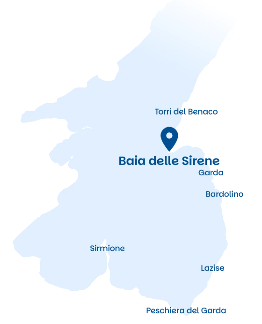 Immersa tra ulivi secolari e dolci pendii morenici, le Baia delle Sirene si trova sulla sponda del Lago di Garda, a pochi minuti da Gargnano. Facilmente raggiungibile dalla Strada Provinciale 9, la baia offre un rifugio tranquillo e protetto, dove la natura regna sovrana e ogni dettaglio invita a rallentare e godersi il paesaggio.